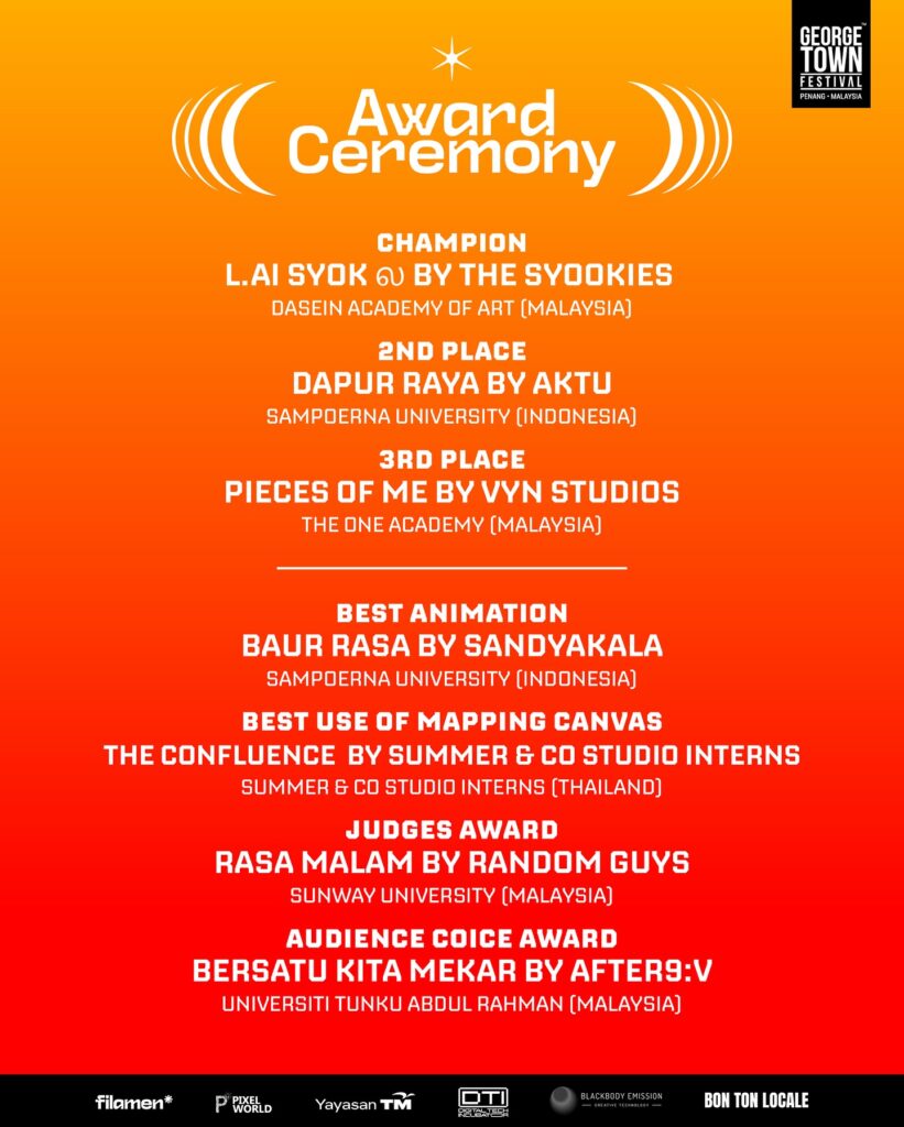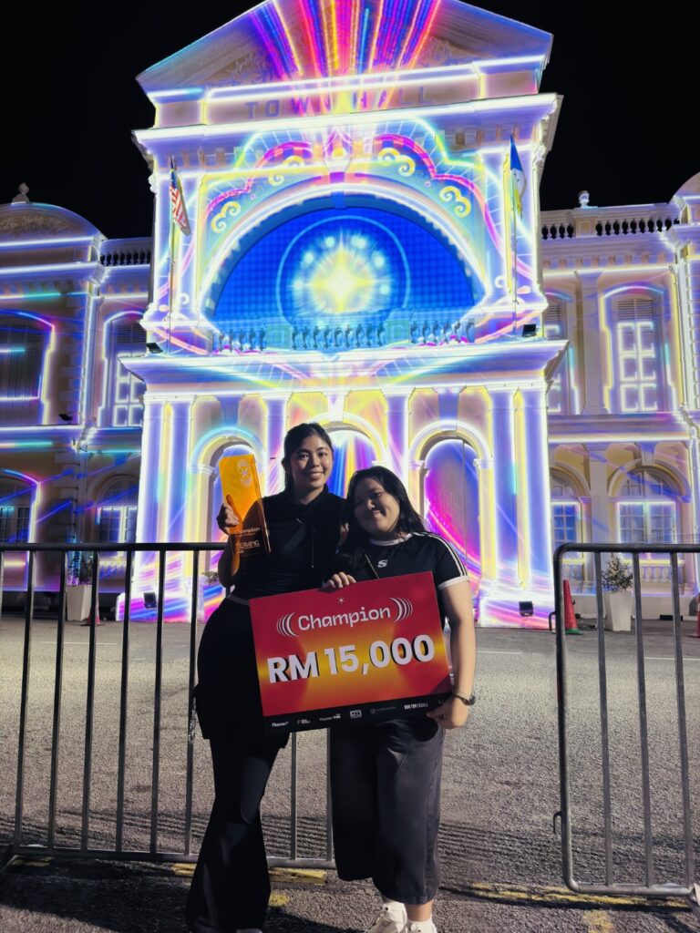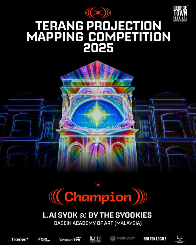 Dasein Academy of Art is proud to announce another remarkable achievement by our Digital Media students, Amelia Chong Tsui Tong and Carrie Lye Xin-Yi, who clinched 1st Place in the Terang 2025 Projection Mapping Competition with their winning work, L.AI SYOK ல.